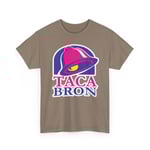 Taca Bron is a dark parody that flips fast-food culture on its head, blending gritty illustration with savage humor. Familiar imagery is reimagined in a raw, rebellious style that feels more underground than drive-thru. Printed big and loud, this tee is made for people who like their streetwear with attitude and edge.